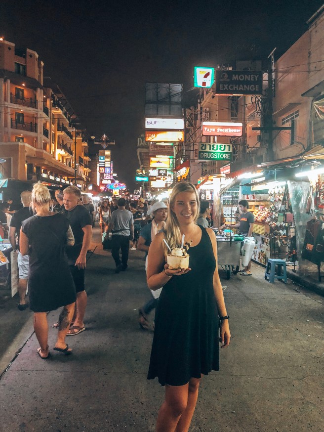 Die wohl bekannteste Backpacker Straße der Welt. Zugegeben, ich habe sie mir irgendwie spektakulärer vorgestellt aber doch war es faszinierend auch mal hier zu stehen. Viele Bars, Stände mit Klamotten/Taschen und Straßenfood. Natürlich haben wir uns auch zwei Mal eine Fußmassage gegönnt (30 Min. ca. 3,90 €), herrlich. Wir sind jeden Abend zum Essen her gekommen. Freitags und samstags ist immer viel mehr los als in der Woche. Wer mutig ist kann auch eines der leckeren gegrillten Insekten probieren 😉