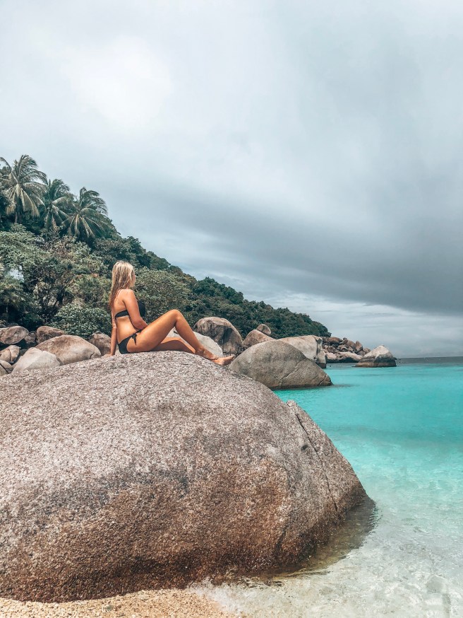 Die Insel ist absolut Plastikfrei. Am Eingang müssen alle Plastikflaschen, Tüten etc. abgegeben werden. Der Eintritt ist dafür da, um die Insel erhalten zu lassen. Dafür „spende“ ich gerne. Als erstes sind wir zum bekannten Viewpoint (Dauer ca. 15 Min.), nehmt unbedingt Moskitospray mit, da es durch den „Dschungel“ geht. Oben kommt man ziemlich verschwitzt an der der Ausblick entschädigt alles. Bilder auf dem Felsen dürften nicht fehlen. Wieder unten angekommen verbindet die zwei Inseln ein kleiner feiner Sandstrand mit türkisfarbenden Badebuchten. Schnorchelzeug nicht vergessen!