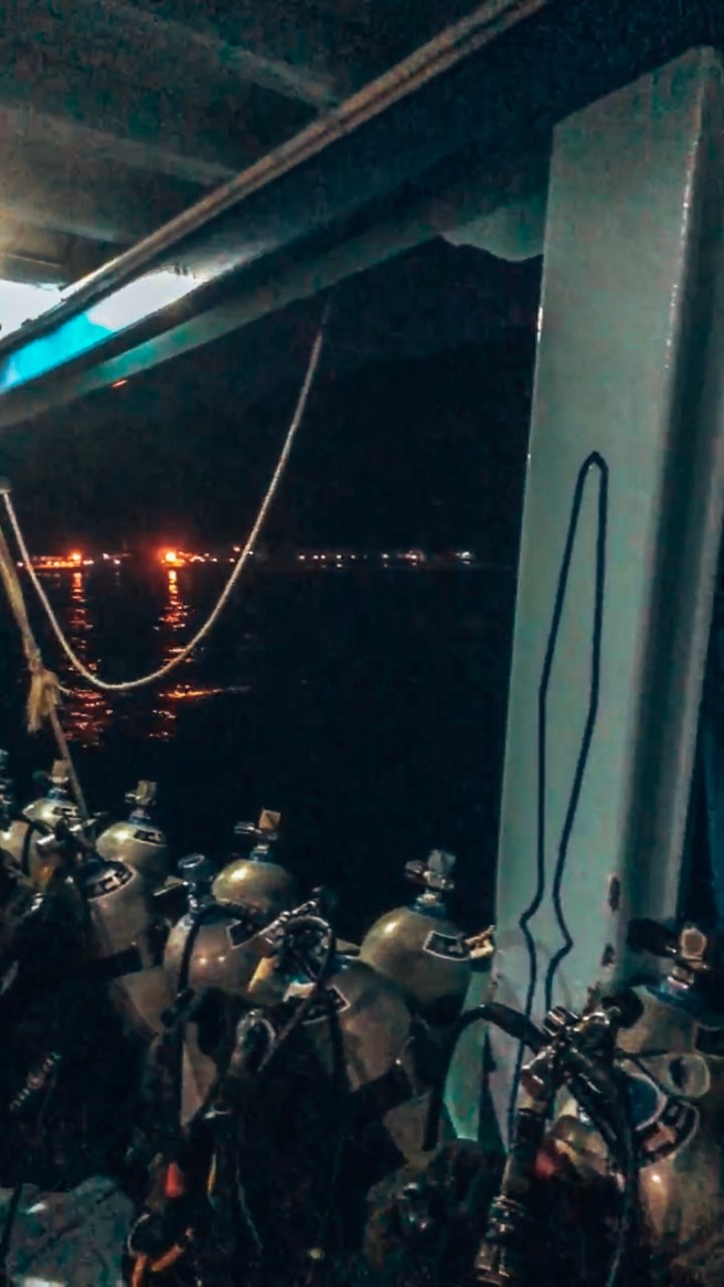 Vor der Vorstellung vom Boot aus ins Dunkle zu springen hatte ich anfangs ziemlich Respekt und was soll ich sagen, am Ende ging alles so schnell das gar keine Zeit war sich darüber Gedanken zu machen. Im Wasser haben wir unsere Taschenlampen in die Hand gedrückt bekommen und los ging es. Sowas faszinierendes habe ich noch nie gesehen. Die Farben der Fischen haben durch unsere Lampen so geleuchtet und es war kein bisschen unheimlich. Alle Fische, bis auf der Zackenbarsch, schlafen und interessieren sich überhaupt nicht für uns. Der Zackenbarsch geht nachts auf Jagd und so haben wir durch Zufall live mitbekommen, wie er einen Fisch gefangen hat. Nach der Hälfte des Tauchganges mussten wir unsere Taschenlampen ausschalten, was zuerst ein komisches Gefühl ist. Ich war erstaunt wie viel man nachts ohne Licht doch unter Wasser sieht. Am faszinierenden war das leuchten Plankton, ich habe mich wie eine Fee im Feenwald gefühlt. Es war unbeschreiblich.