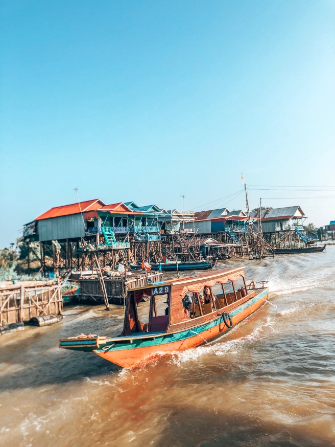 Ich hatte vorher bereits über das schwimmende Dorf gelesen und wollte mir einen Besuch daher nicht entgehen lassen. Vom Zentrum aus dauert die Fahrt ca. 45 Minuten mit dem Minivan bevor man auf ein Boot umsteigt. Entlang des Sees kommt man nach und nach zu dem Dorf, welches einfach nur faszinierend wirkt. Einzelne Häuser aneinander gereiht und auf Stelzen gebaut, wirken diese sogar relativ stabil und doch fällt einem direkt auf, wie arm die Gegend ist. Zu verschiedenen Jahreszeiten liegen die Häuser mal mehr im Wasser oder gar ganz im Trockenen. Einige Häuser wirken zerfallen und sind dennoch bewohnt, wieder andere Häuser sehen richtig gut aus. Was mir auffällt, dass die Leute glücklich wirken. Sie winken einem zu, die Kinder spielen und baden im Wasser oder fahren mit Booten rum. Oft neigen wir dazu zu sagen, dass es den Leuten ja so schlecht gehe aber diesen Eindruck hatte ich überhaupt nicht, denn sie kennen nun mal nichts anderes als das was sie haben.