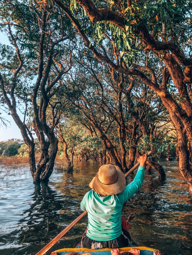 Zwischendurch sollen wir auf kleinere Bambusboote umsteigen, die jeweils von einer Frau und ihrem Baby gesteuert werden. Dies fand ich dann wiederum befremdlich aber gehörte wohl zu der Tour dazu, wofür man allerdings gezwungen war weitere 5 US$ zu zahlen. Die Fahrt durch den Wald hat sich wiederum gelohnt, es war einfach nur ruhig und still, mitten in der Natur.