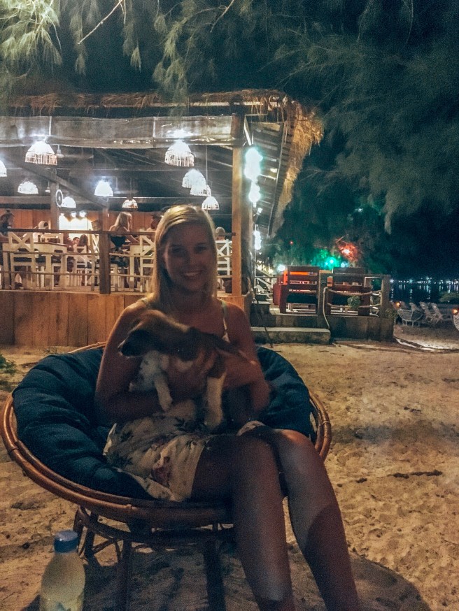Das Hostel liegt in der Mitte des Hauptstrandes und ist relativ neu. Die Kette hat uns bereits in Siem Reap sehr gut gefallen, daher sind wir wieder dort hin. Bequeme Betten, kalte Duschen (wie auf der ganzen Insel), verhältnismäßig günstiges und gutes Essen.