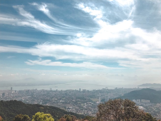 Oben angekommen sind wir als Erstes auf die angrenzende Aussichtsplattform gegangen. Der Anblick über Penang war ganz schön aber hat mich nicht umgehauen, da hab ich schon beeindruckendere Ausblicke gehabt.