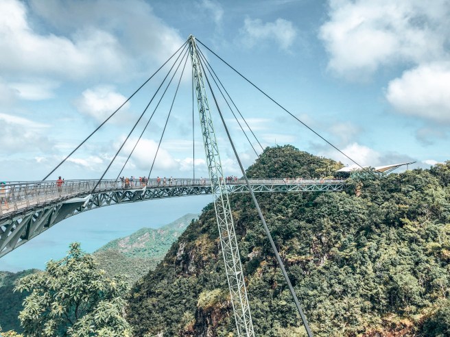 Die Langkawi Sky-Bridge ist eine geschwungene Fußgänger Schrägseil-Brücke an der Westküste der Insel auf knapp 700 Metern. Sie wurde 2005 fertiggestellt und hat eine Länge von 125 Metern. (Quelle: Wikipedia9