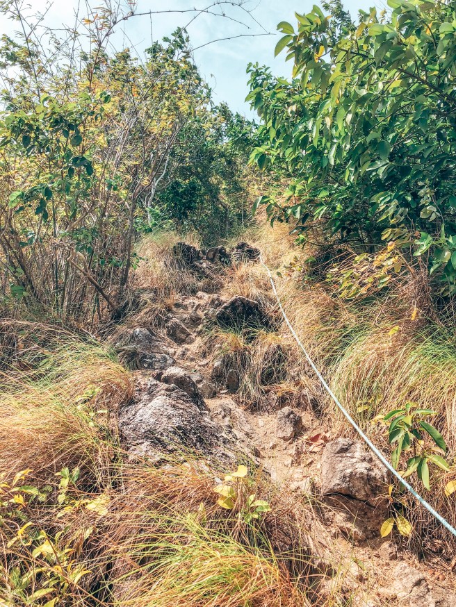 Der Aufstieg und die Anstrengung zum dritten und letzten Viewpoint hat sich gelohnt mehr als gelohnt. Mit Pausen hat es ca. 45 Minuten nach ganz oben gedauert. Der höchste Punkt der Insel misst übrigens ganze 690 Meter.