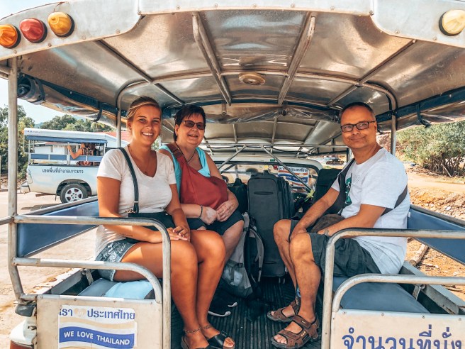 Angekommen sind wir am „Klang Hia Pier“ von wo aus wir uns ein Taxi genommen haben. Die Fahrt hat ca. 30 Minuten gedauert und 500 Bath (ca. 14,00 €) gekostet. Wirklich verhandeln konnten wir nicht, da es keine Ausweichmöglichkeiten an Transportmitteln gab.