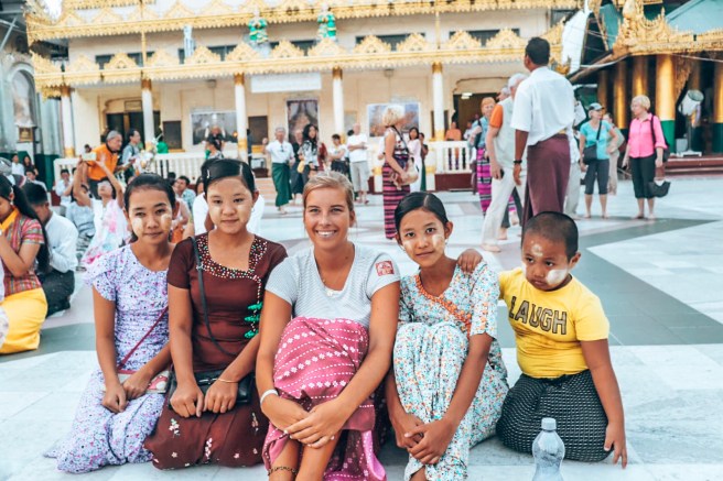 Die Einheimischen sitzen auf dem großen Platz auf dem Boden und beten. Besonders beeindruckt haben mich die Burmesen, welche genauso neugierig auf uns sind so wie wir auf sie. Kein ekliges Begaffe, sondern ein neugieriges und erfreutes, dass wir uns für ihr Land interessieren. Und so haben wir die Mönche nach Fotos gefragt und uns mit ihnen unterhalten. Interessant war hier, dass es auch weibliche Mönche (heißen die überhaupt genauso?!) gibt, die ein rosafarbendes Gewand tragen.