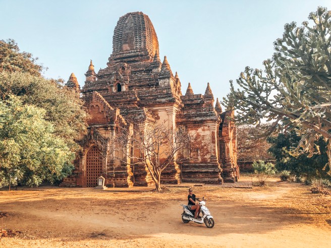 Zugegeben, wer online nach Bagan sucht, dem wird zu 99 % ein Bild angezeigt, auf welchem Heißluftballons und eine Tempellandschaft zu sehen sind. Tagsüber ist es unmöglich die Gegend zu erkunden, da es 38 Grad im Schatten sind, die Temperaturen in der Sonne kann man somit also erahnen. Erkunden ist also nur morgens/vormittags oder erst wieder nachmittags möglich.