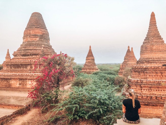 Zum Pflichtprogramm gehört der Sonnenaufgang und so hat der Wecker um 5 Uhr geklingelt. Quasi mitten in der Nacht ging es mit dem Roller über buckelige Feldwege zum bekannten, nicht allzu überlaufenen Tempel. Hinaufgeklettert und warten. Es war übrigens sowas von kalt, die Temperaturen kühlen hier nachts runter auf 16 Grad, nicht wirklich kalt aber im Verhältnis zum Tag friert man hier.