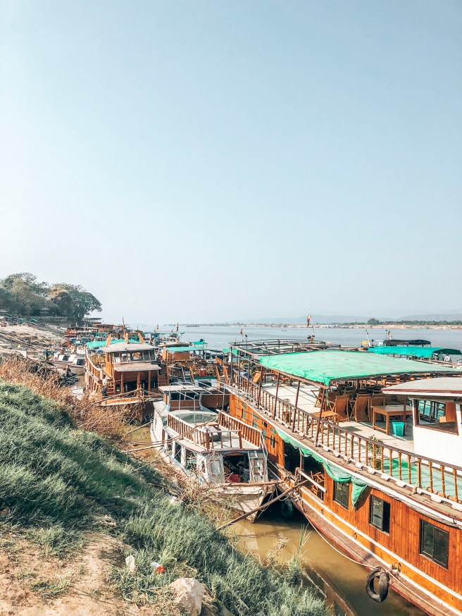 Auf dem Sonnendeck Platz genommen hat die Überfahrt auf dem Fluss „Ayeyarwady“ ungefähr eine Stunde gedauert und verging wie im Flug, denn links und rechts konnte man die Natur bewundern.