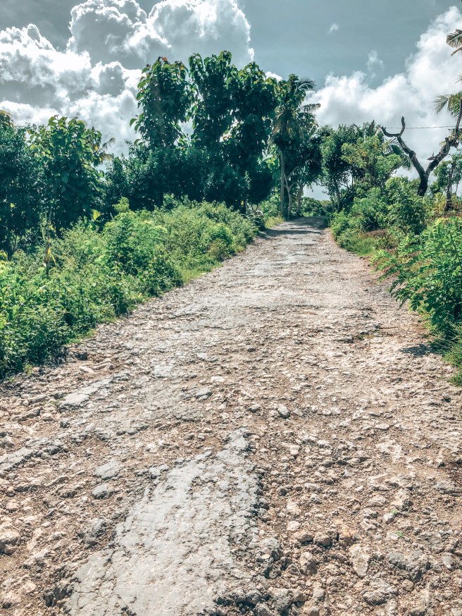 Wir sind bestimmt gleich da. Auch das dachte ich anfangs. Mir wurde schnell bewusst, egal ob im Auto oder auf einem Roller, wenn man 45 Minuten durchgehend durch Schlaglöcher fährt, bekommt jeder gesunde Rücken Schmerzen, autsch! Zähne zusammen beißen und festhalten. Mich bringt ja nichts aus der Ruhe, daher hab ich mich die längste Zeit eher über das Gerüttel amüsiert und mich innerlich bedankt, dass ich nicht selbst fahren muss, denn obwohl ich mich durchs Rollerfahren auf Bali und in Thailand als mittlerweile gute Zweiradfahrerin betiteln würde, war ich dankbar dieses Mal hinten drauf zu sitzen! Selbst mein Guide, der auf Nusa Penida aufgewachsen ist, meinte das es alles andere als einfach ist.